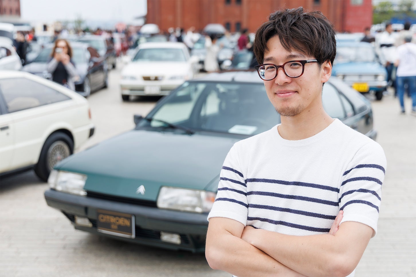 YOKOHAMA Car Sessionの発起人である後藤和樹さん。愛車はいすゞ「ピアッツァXE」です。現在は展示会などのブースのデザイン設計に関わるお仕事をされています。