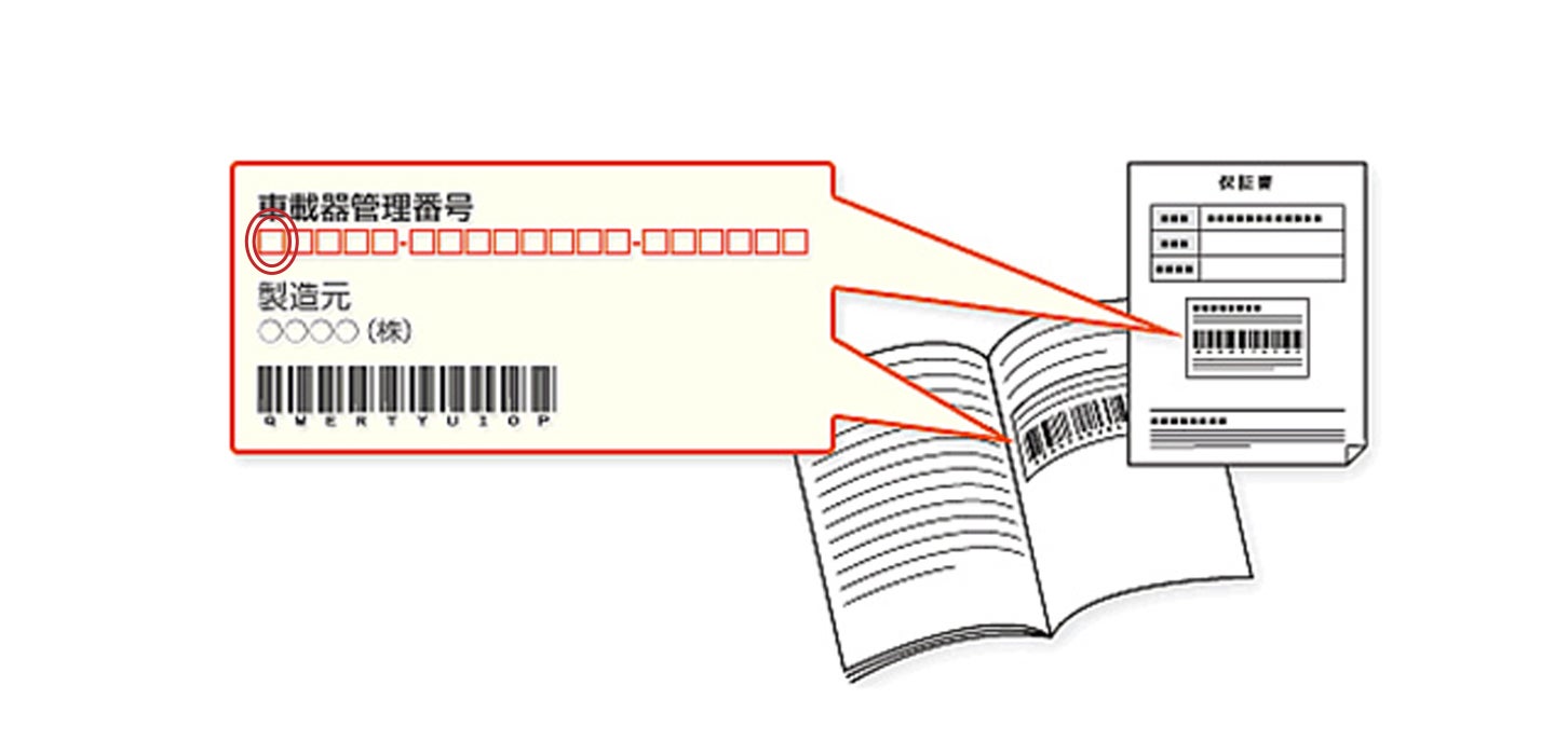 車載器の取扱説明書や保証書、パッケージの外箱に貼られたシールから確認できます。