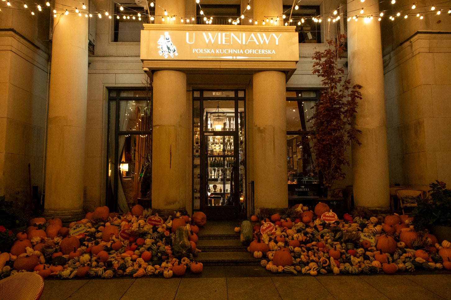 1日目の夕食に選んだのは、伝統的なポーランド料理を堪能できるレストラン「U Wieniawy(ウ・ヴィエニャヴィ)」。ホテルから歩いて20分ほど、ワルシャワ国立劇場の中に佇むその一軒は、外観から内装に至るまで気品に満ち、地元の人々にも長く愛されてきた名店である。「U Wieniawy」という名は、華やかな社交界で知られた将軍ボレスワフ・ヴィエニャワ=ドゥウゴシュフスキに由来。店の周辺には、将軍が愛した戦前の名所「Ziemiańska」や「Adria」といった伝説的なカフェもほど近く、街歩きとあわせて立ち寄るのに絶好のロケーションだ。