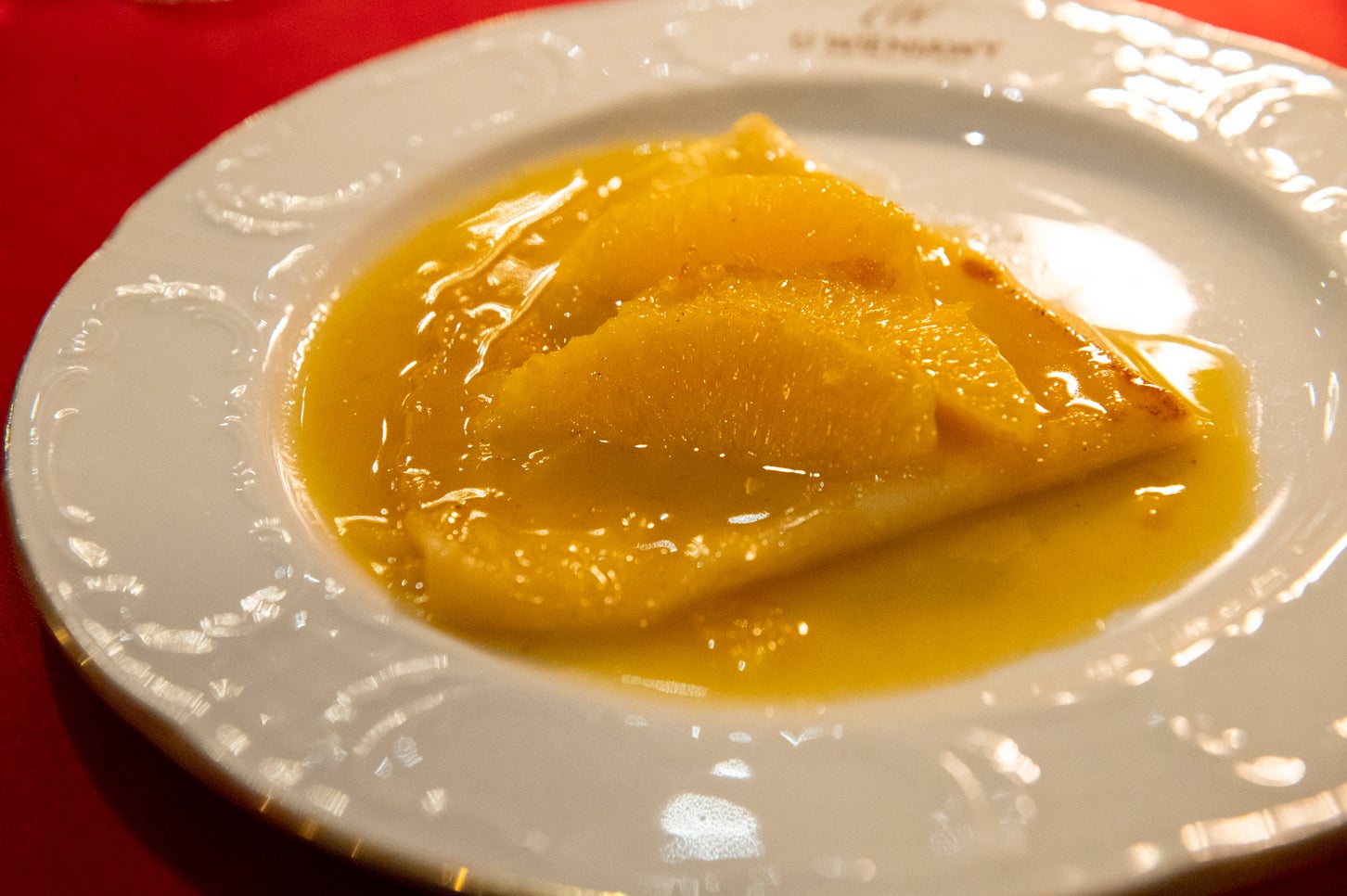 そして食事の締めには、デザートとしてクレープ「ナレシニキ」を。甘酸っぱいオレンジソースが軽やかに効いた一皿は、満腹のはずの胃をすんなりと受け入れる不思議な美味しさだ。気づけば最後のひと口まで楽しんでいた。