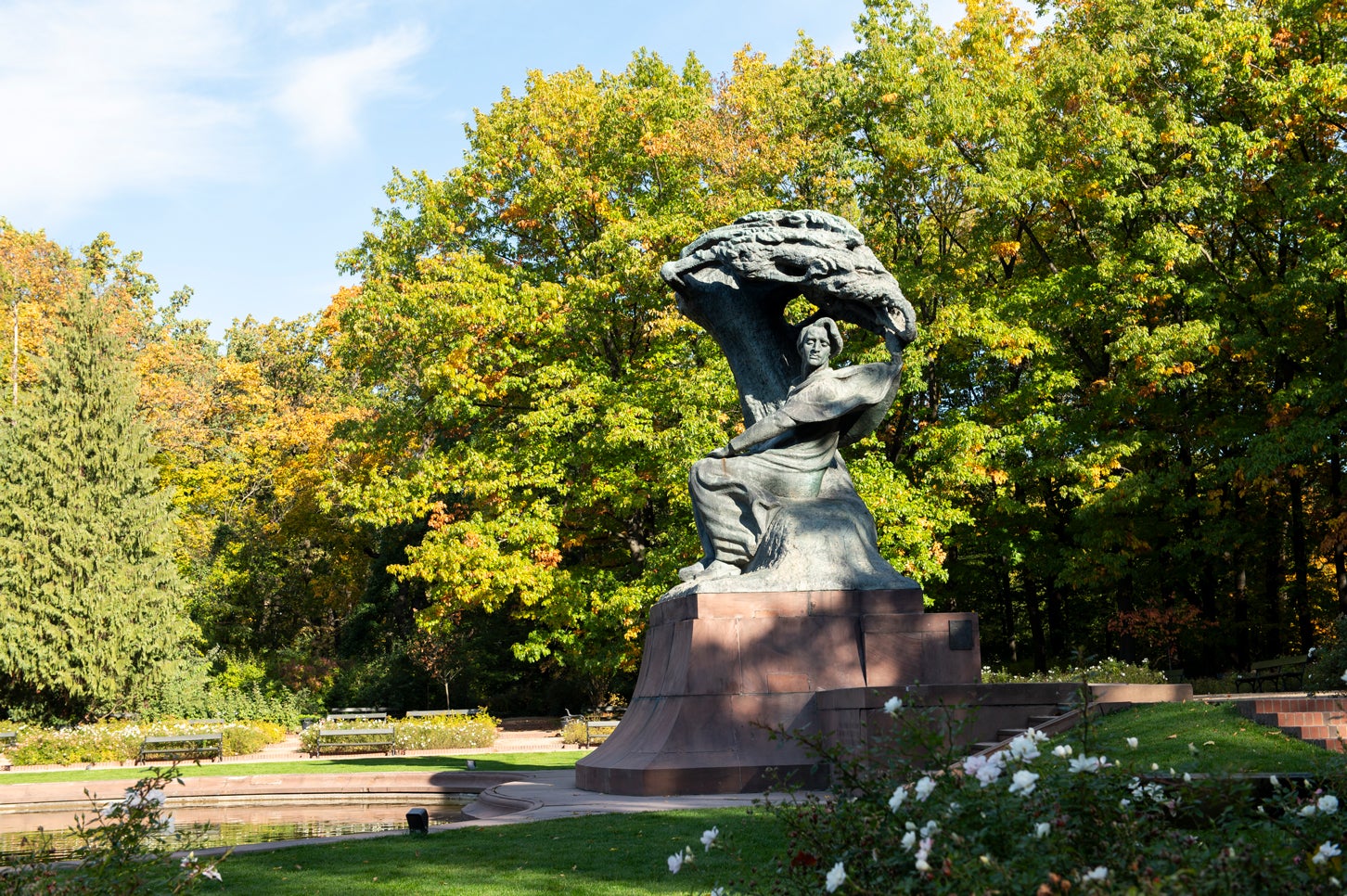 園内に入ると、まず目を引くのはショパンの銅像だ。毎年5月から9月の日曜には、この像の前で著名なピアニストによるコンサートが開催される。雨天決行、しかも入場は無料とあって、地元民から観光客まで多くの人々が集い、音楽とともに休日のひとときを過ごす。ポーランドの人々がショパンを、そして音楽をいかに大切にしているかを、ここで実感できる。
