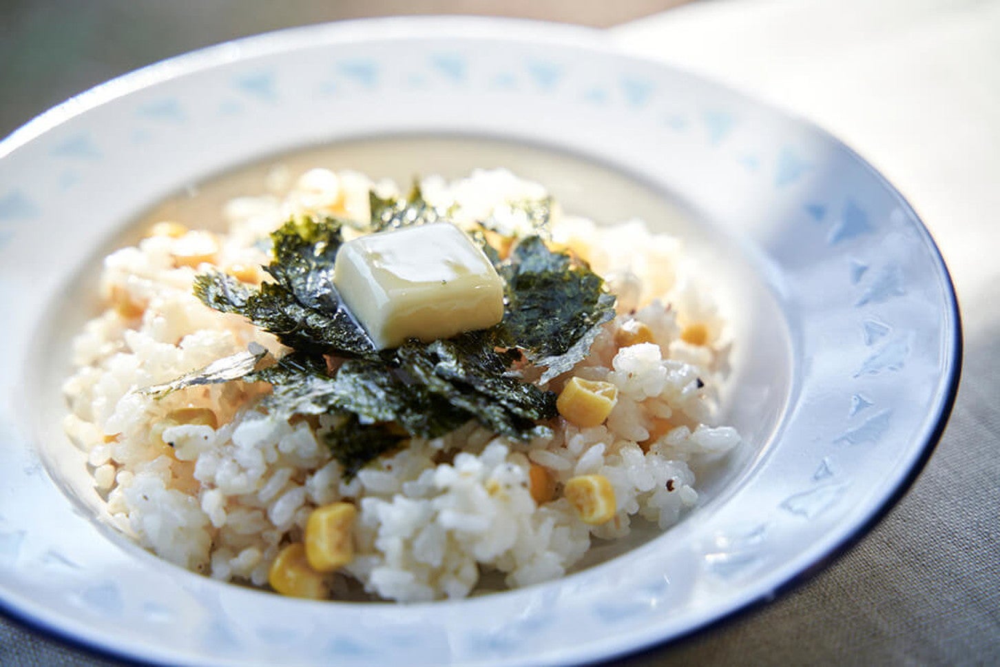 1品目:海苔が味のポイント! 「おにぎりでコーンピラフ」