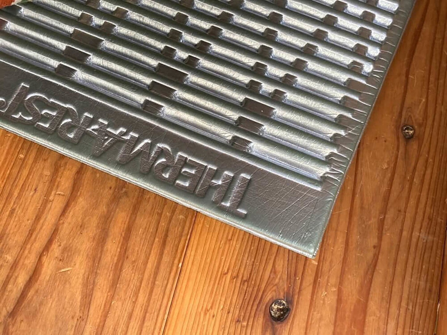 そんな不具合を解消するのがマットレスです。空気を入れるタイプもありますが、私はウレタンフォームのマットレスで、サーマレスト「リッジレスト ソーライト」を愛用しています。