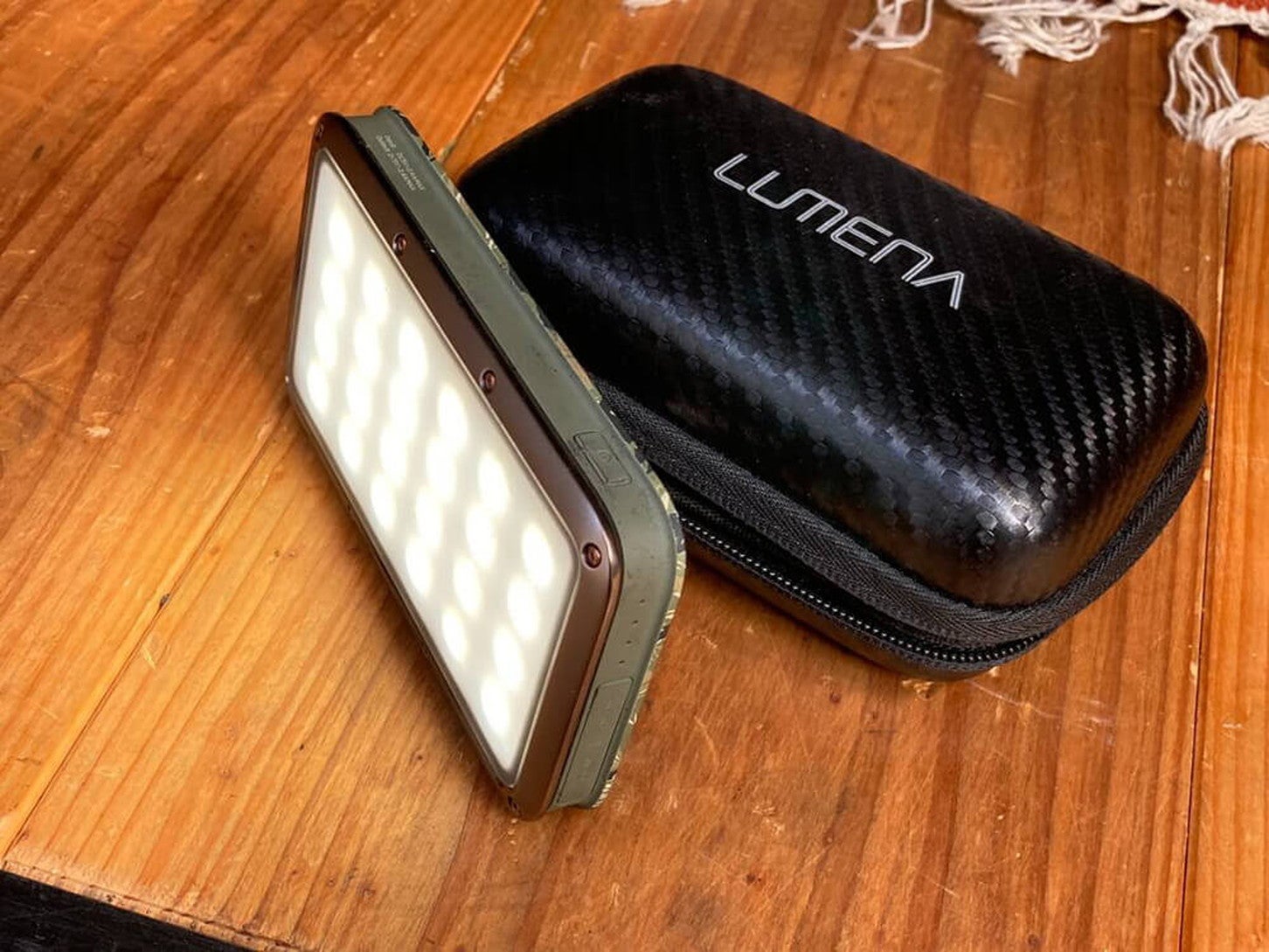 私が車中泊のときに使っているのは、高照度のLEDライト「LUMENA(ルーメナー)」です。フックに吊るして使ったり、手に持って暗い場所を照らすこともできます。