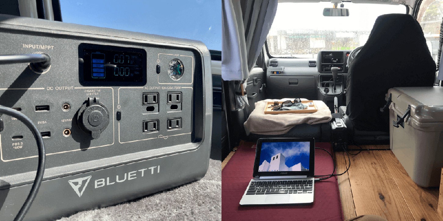 車中泊の旅ではクルマを停止している時間も長いので、スマホをはじめ各種電気機器の充電のためにポータブル電源は不可欠です。