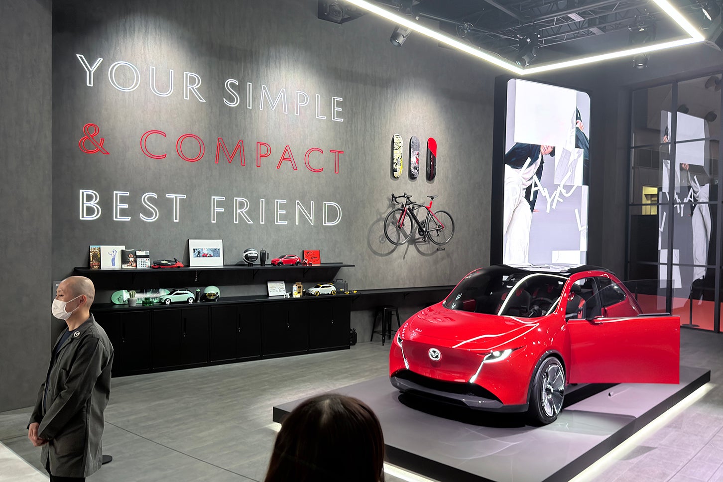 パッと見で心を持っていかれたのが、マツダのコンセプトモデル「マツダ ビジョンXコンパクト」。コピーには“ベストフレンド”という表現が使われていて、「クルマは、生活をともにする親友」という、人とクルマの距離を縮めるやわらかい提案が印象的だった。