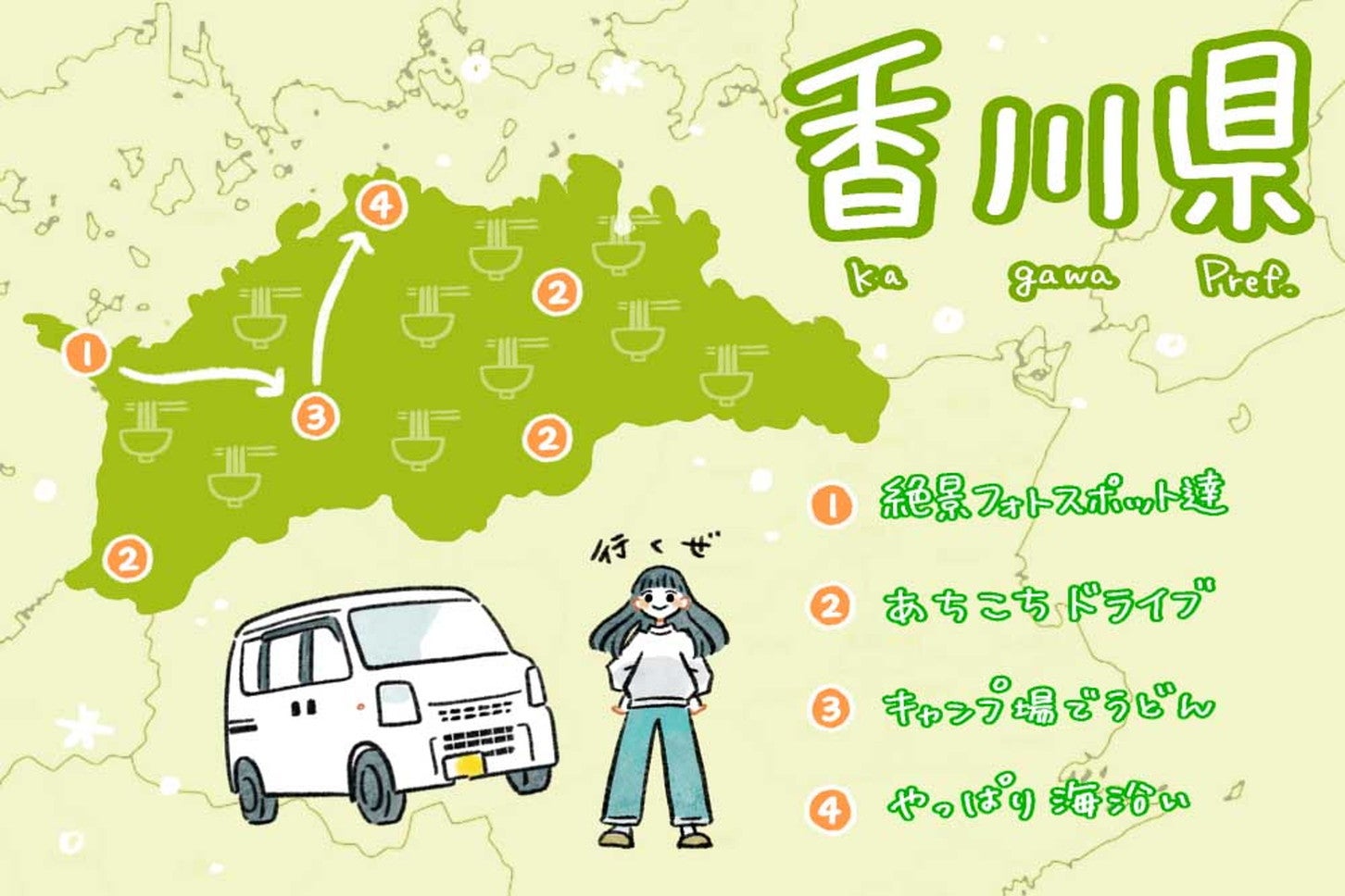 車中泊で四国を巡り、香川で見つけた絶景フォトスポット! ~イラストレーターいとうみゆきのクルマのおうち旅~