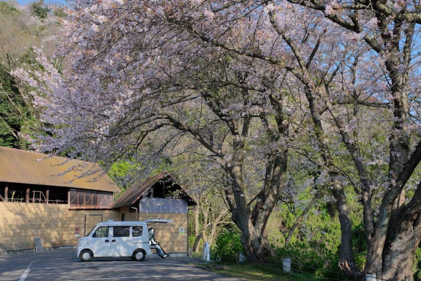ちなみに桜シーズンの日中は入山規制がかかっており、駐車場利用には事前予約が必要になりますが、早朝だけはその規制がかかっていなかったので、行きたいと思ったときに行くことができるんです! 実は私も、晴れの日が来るまで数日待ちました。そんなふうに臨機応変に行動できるのも白くまのおかげ。