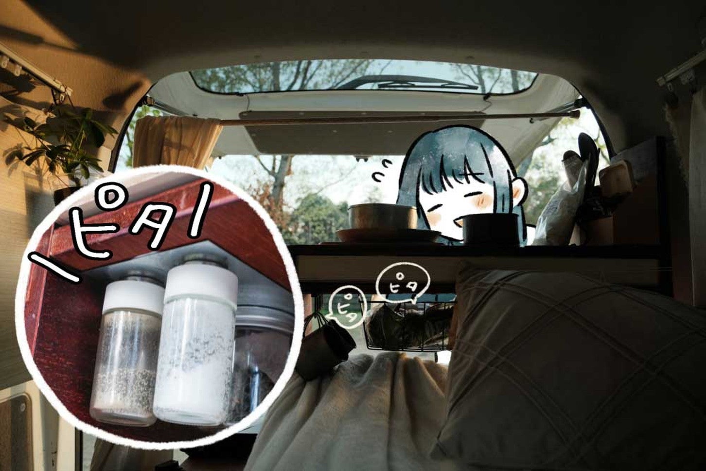 机の上にコーヒーが入っているカップを置きっぱなしにして発進してしまい、布団が汚れたことはありますが⋯⋯通常の乗車前チェックに加え、クルマ旅では机や調理台の上に落ちそうなものはないかの確認も大切だなあと何かを落とすたびに実感しています。