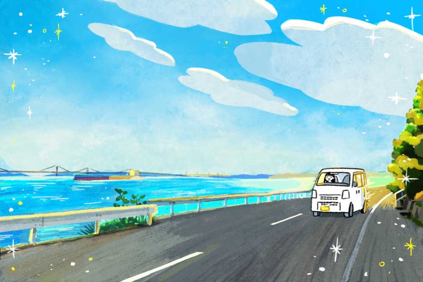 イラストレーター・いとうみゆきさんのクルマのおうち旅・四国編。今回は香川を巡ります。 全国で一番小さい面積の県ですが、「さぬきのこんぴらさん」として親しまれている金刀比羅宮(ことひらぐう)や、直島(なおしま)や小豆島(しょうどしま)など、瀬戸内海に面した自然豊かな観光資源が豊富。そんな魅力あふれる香川県の見どころをいとうさんと白くまが満喫しながら周ります。それでは今回のクルマ旅、スタートです!