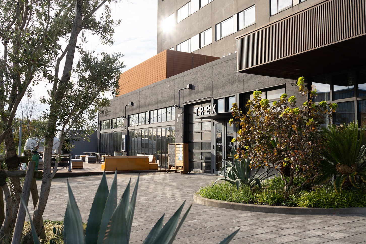 TREX KAWASAKI RIVER CAFEがあるのは、羽田空港のほぼ対岸に位置する施設「The WAREHOUSE」の中。The WAREHOUSEには、カフェやレストラン、ホテル、コワーキングスペース、多摩川でのアクティビティを楽しむための施設など、さまざまな業態がひとつの建物に集まっている。