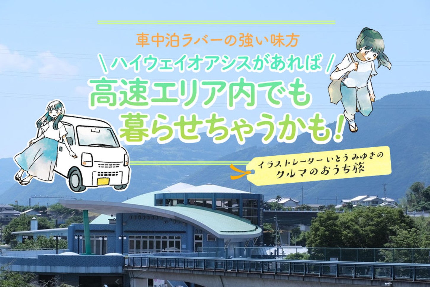 アウトドア車中泊ラバーの強い味方、ハイウェイオアシスがあれば高速エリア内でも暮らせちゃうかも! ~イラストレーターいとうみゆきのクルマのおうち旅
