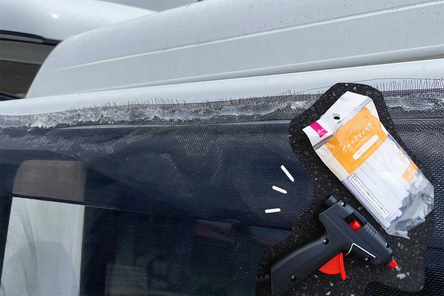 とりあえずの応急処置としてグルーガンで処理することに。接着剤よりもしっかりくっついてくれたのですが、見栄えの悪さが加速しました!
