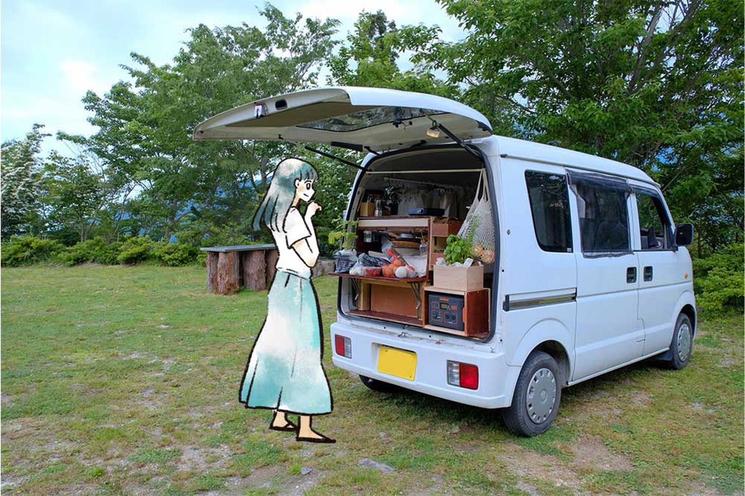 クルマ旅の楽しみのひとつ、地産の素材を車内キッチンで調理して食べる!