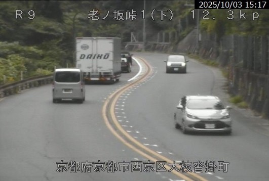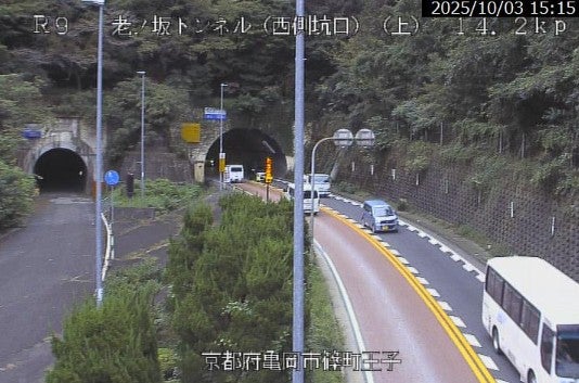 2025年2月に通行止めとなった国道9号の老ノ坂峠。